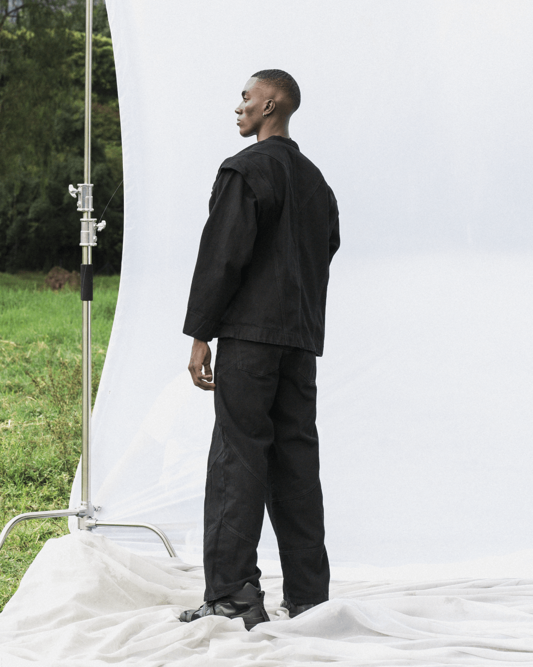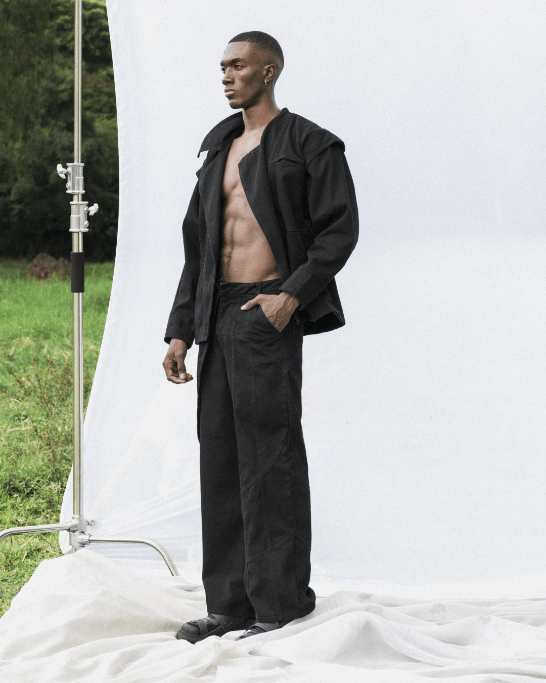 Jean denim negro bolsillo sobrepuesto cruzado